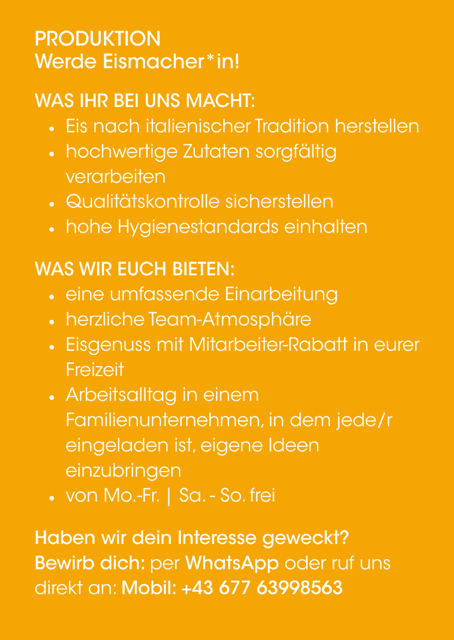 - Mitarbeit in der Eisproduktion oder im Eisverkauf
